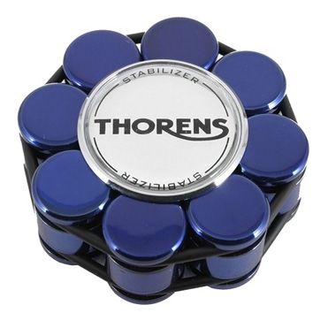 Прижим Thorens улучшает контакт виниловой пластинки с диском проигрывателя, оснащенным фетровым или каучуковым матом. 8 сбалансированных грузов общим весом в 550 г. помогают исправить небольшие деформации пластинок, а так же успешно поглощают их вибрацию и резонанс. Стабилизатор поставляется в элегантной деревянной шкатулке.